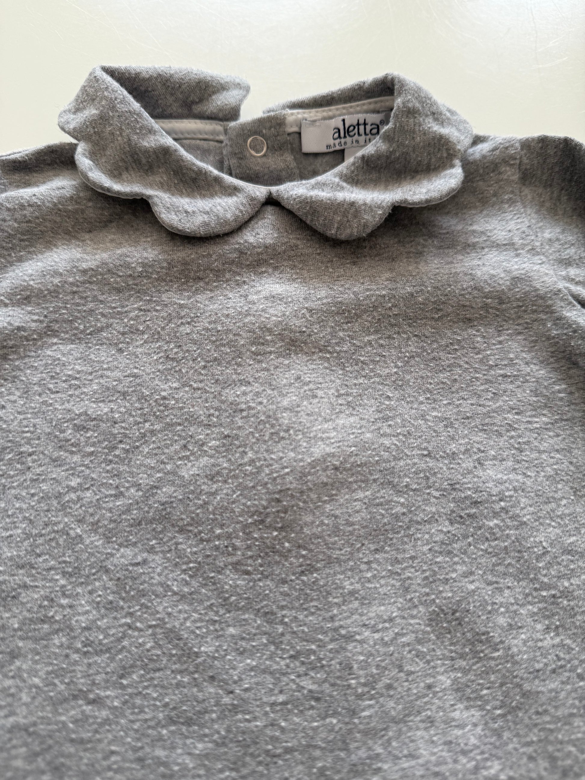 Super süßes Longsleeve mit Schleifchen und süßem Kragen zum Knöpfen auf dem Rücken der italienischen Marke aletta. Guter Zustand mit Waschspuren. Tolle Qualität. Gr. 6 Monate, fällt aber aus, wie 62/68